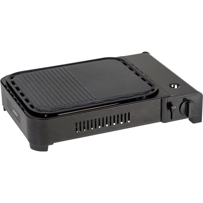 Transportabel gasbordgrill med justerbar flamme, integreret pitzotænder med transportpose.