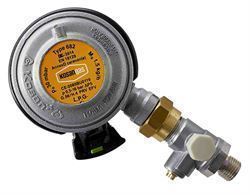 Gasregulator med testpoint, Kosangas, click-on, integreret testpoint, overtryksventil og slangebrudssikring, passer til 5, 10 og 11 kg gasflasker.