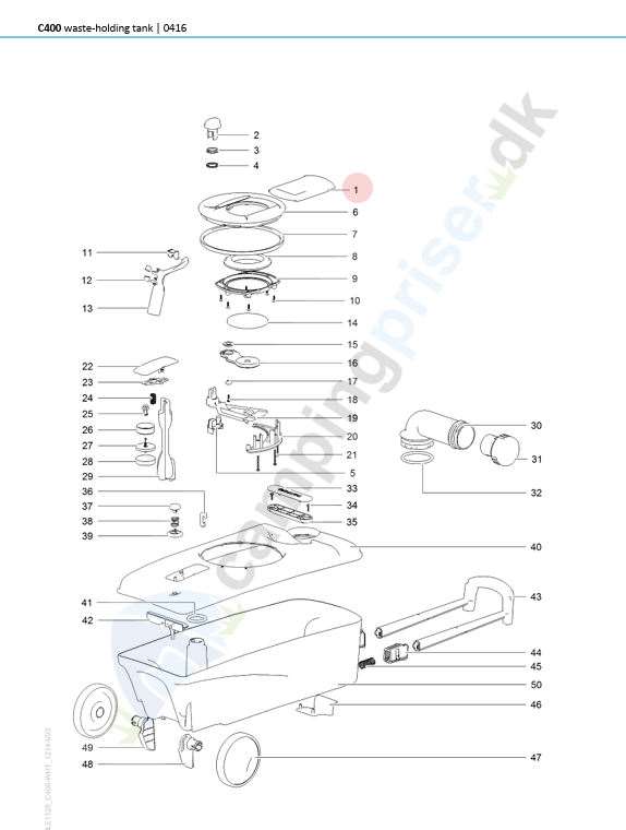 Se 1. tegning Thetford toilet C400 - del 1 - mærket med rød