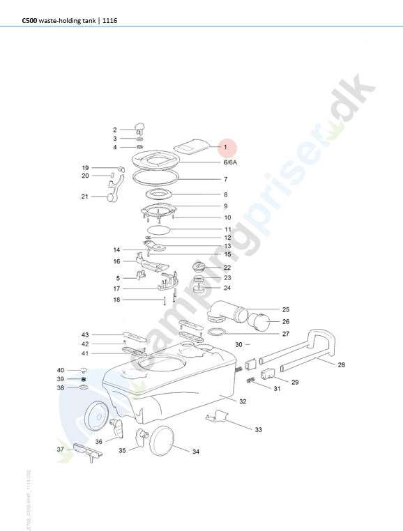 Se 2. tegning Thetford toilet C500 - del 1 - mærket med rød