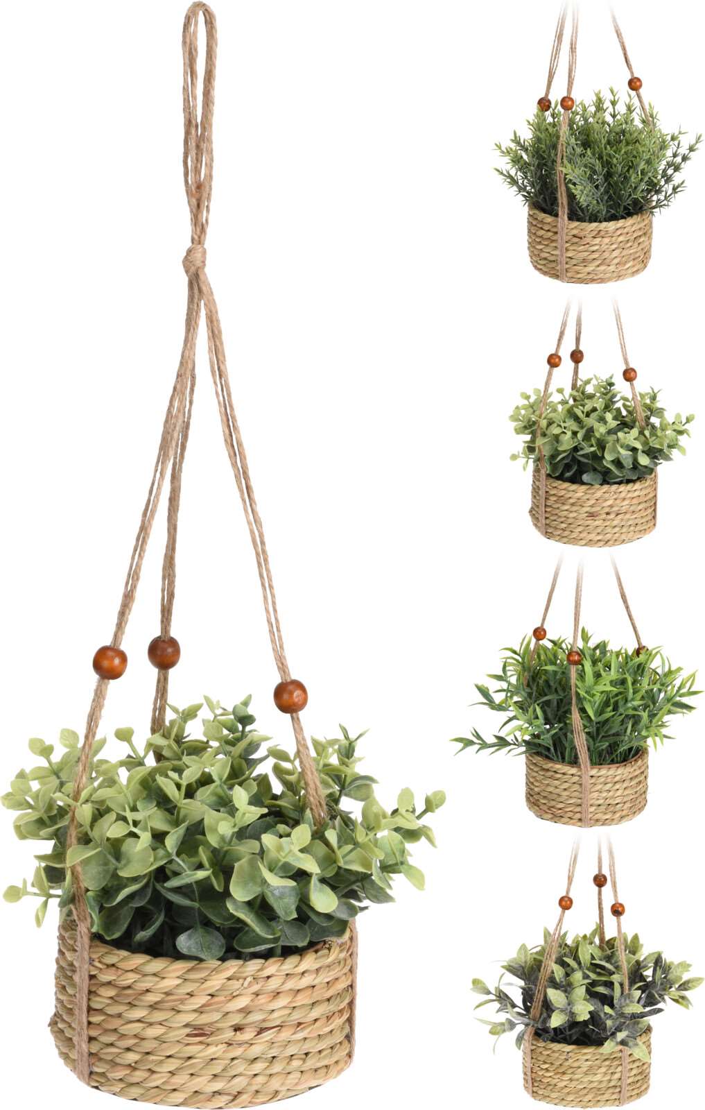 Kunstig grøn plante i plast, i hængekurv