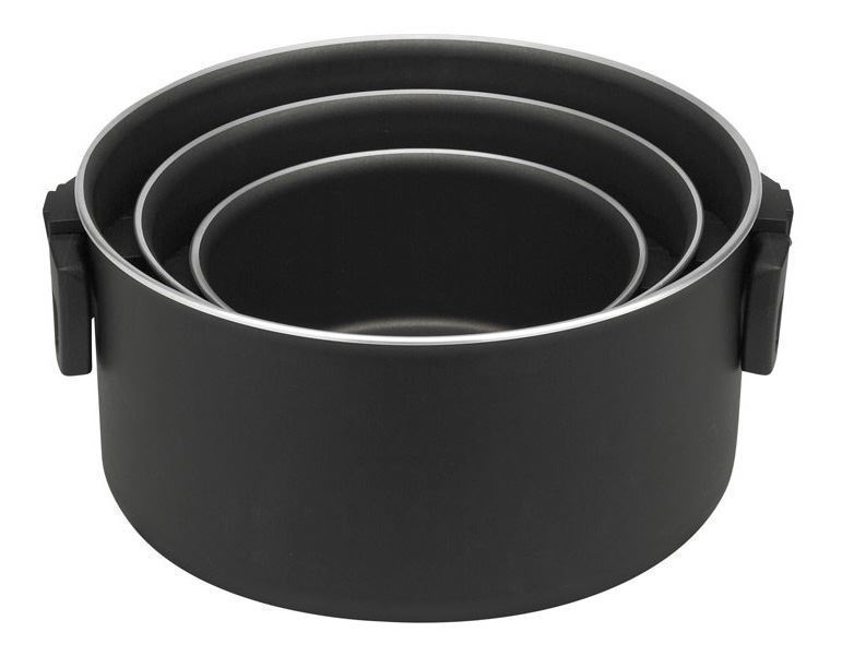 De tre gryder med glaslåg kan gøres mere kompakte: