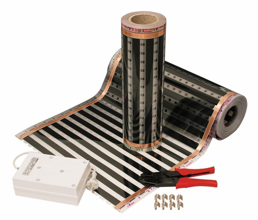 Ebeco gulvarmefolie består af et tyndt og stærkt folie varmelegeme som bliver forsynet med lavvolt fra en omformer.