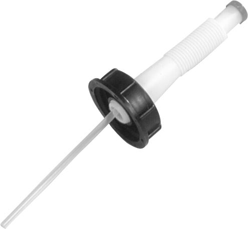 Hældetud med kort flexslange og låg til vanddunk 10 liter.Gevind Ø 54 mm