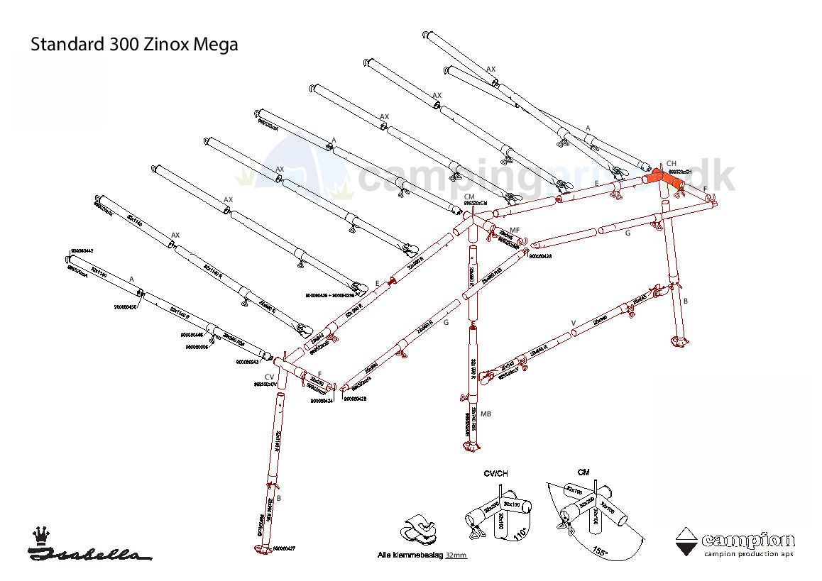 Isabella højre hjørne til standard fortelt i 300 cm dybde i Mega stel