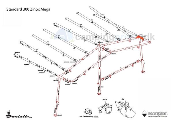 Højre hjørne til standard fortelt i 300 cm dybde i Mega stel.