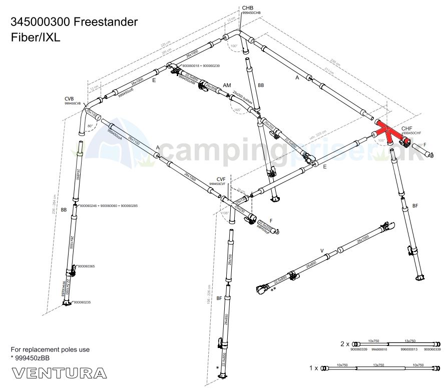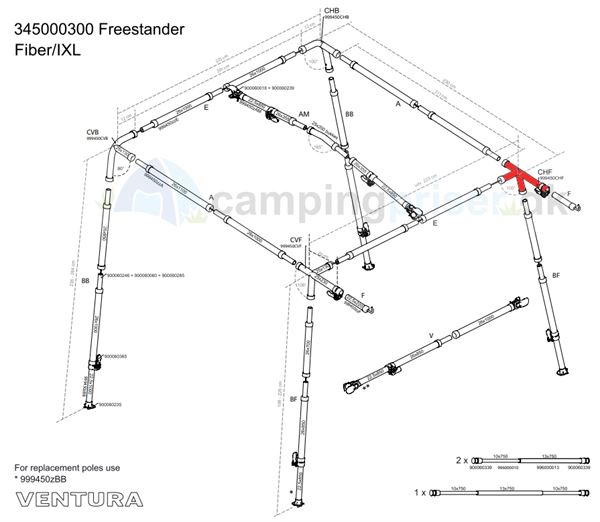 CHF - hjørne - højre  -  i front af teltet - Ventura Freestander Fiber - IXL stel