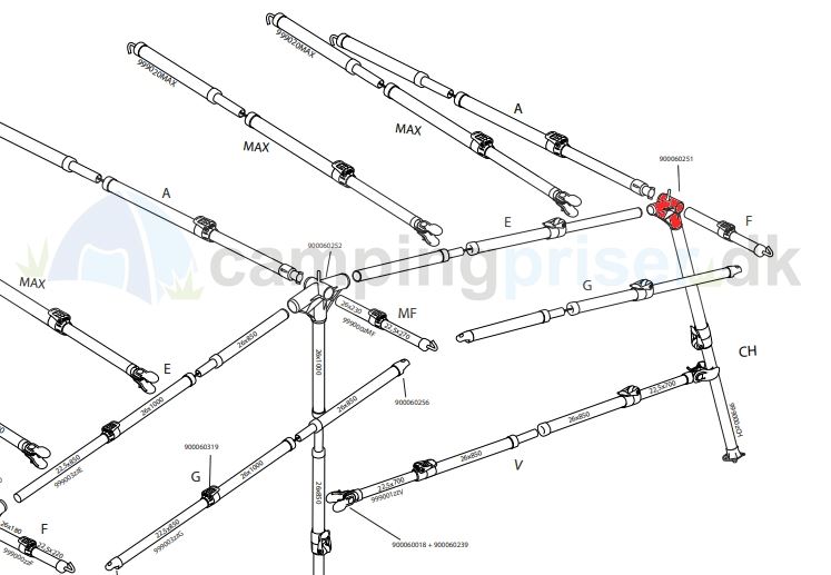Hjørnekryds i nylon til hjørnestangen i højre side af fronten.
