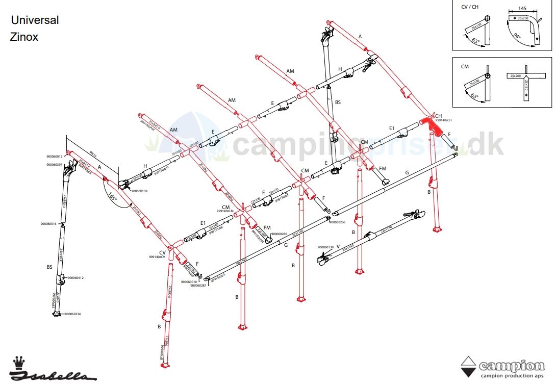 Isabella CH hjørne højre til Universal 360 og 420 i Zinox med T-Rex beslag