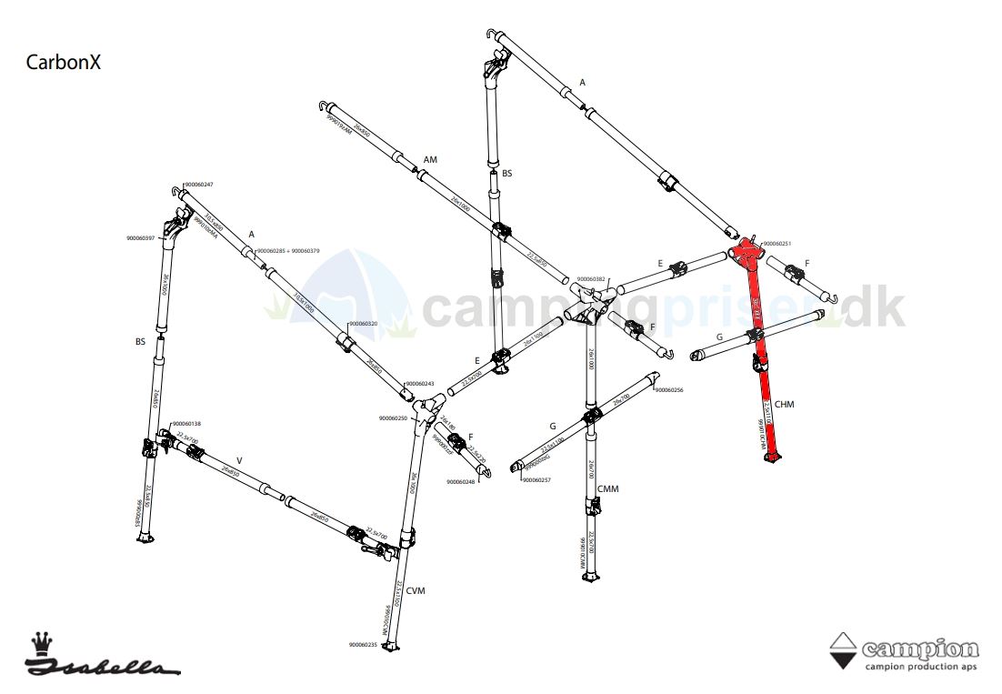 Hjørne stang -  CHM-hjørne - med beslag  Isabella Magnum og Minor deltelt - CarbonX