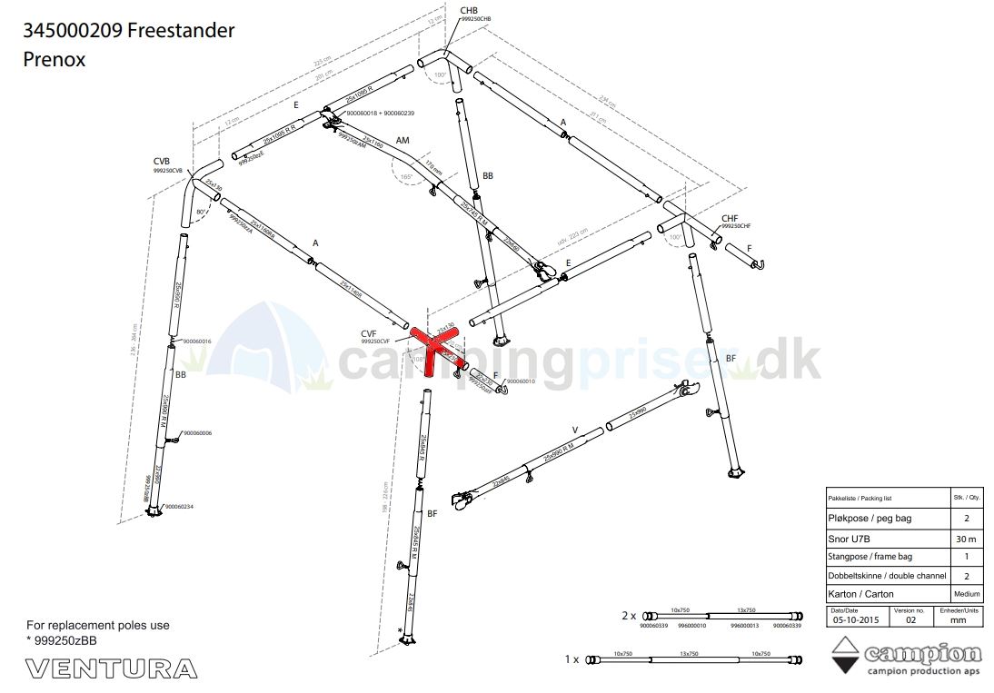 Hjørne Venstre Freestander Prenox Ventura CVF stang