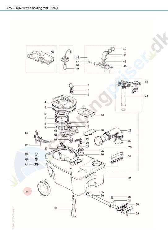 Thetford toilet C-250 og C-260 bundtank hjulsæt