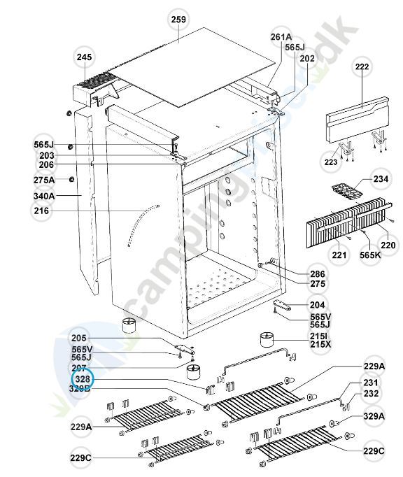 Holder til køleskabsrist i Dometic køleskab (se pos. 328)