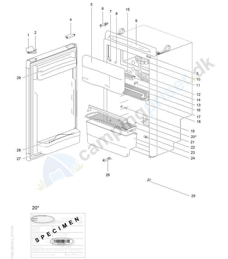 Øverste trådhylde til Thetford køleskab, mål 415 x 164 mm