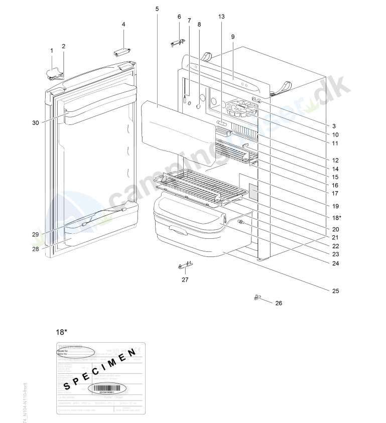Nederste køleskabsrist Thetford køleskab  N100,N104,N110, mål 210 x 455 mm