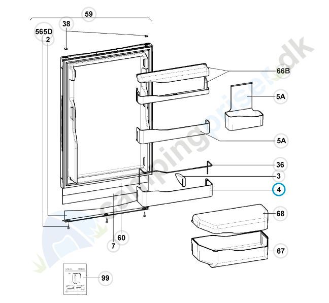 Hylde nederste til Dometic køleskabs dør (se pos. 4)