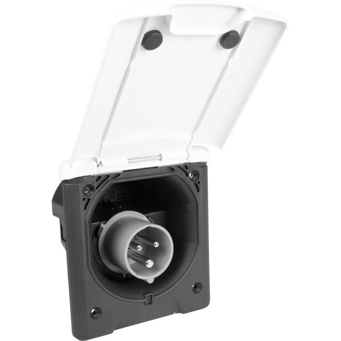 Indbygningsstik med hvidt klapdæksel 230V - CEE