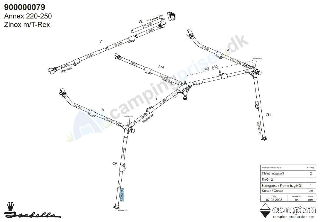 Isabella Anneks Zinox ben til udbygning 220 - 250 med hjørne beslag til venstre side