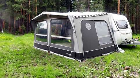 Teltet har et specielt tagpanel, sidepuder og en dobbelt lækant langs tilslutningen til campingvognen,