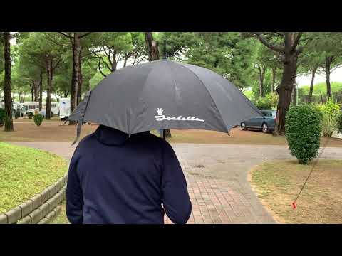 Paraplyen slås op med et tryk på en knap og er udstyret med et ergonomisk skumhåndtag.