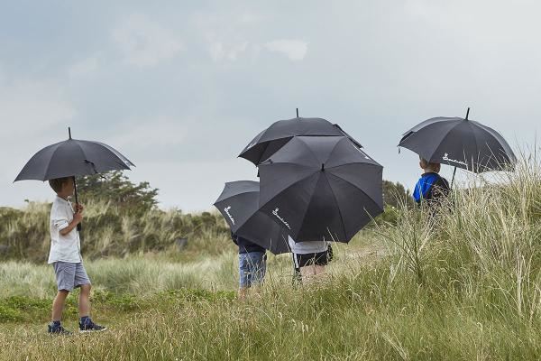 På hver side af paraplyen er der to reflekterende Isabella logoer, så du er synlig på en mørk regnvejrsaften.