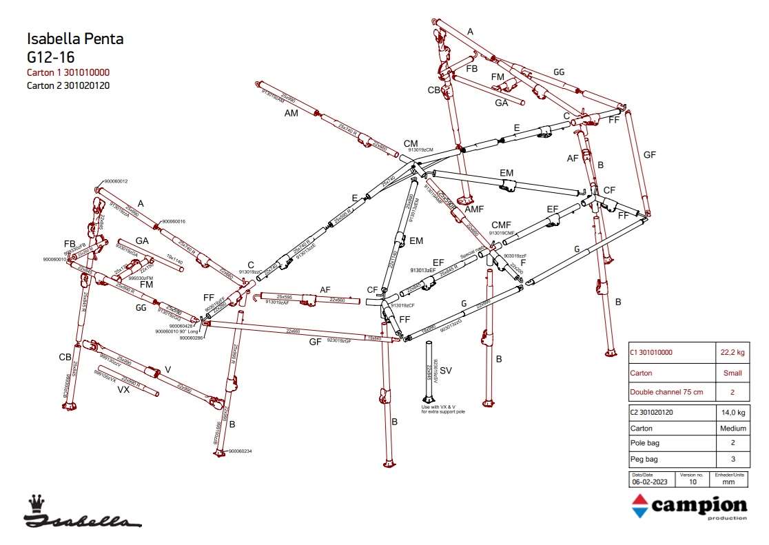 Komplet stelsæt til Isabella Penta G16 / G18