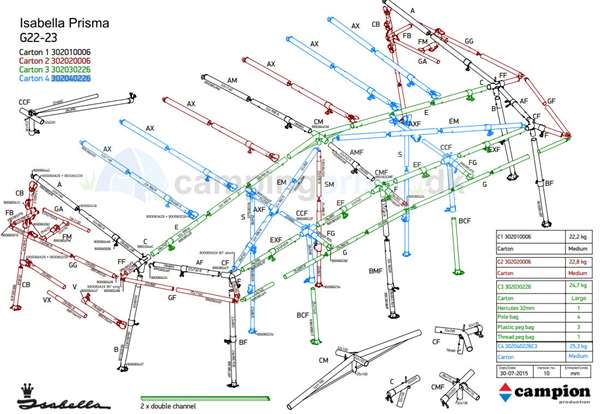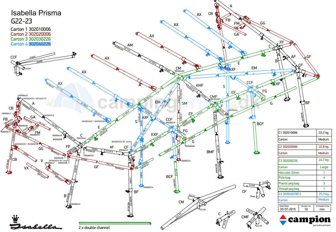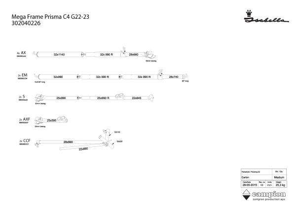 Isabella Prisma Mega stel C4 til str. G22-G23 MegaFix - stængerne på steltegningen er mrk. med blå