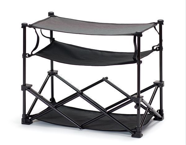 Sammeklappelig skohylde til opbevaring af sko i forteltet.