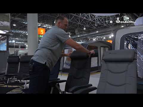 Thor stolen, der er en polstret campingstol med nakkepude, armlæn og ryggen kan sættes i 8 positioner – perfekt til campingturen eller hjemme på terrassen, både ved bordet og som afslapningsstol