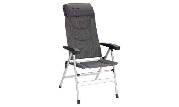 Thor stolen, der er en polstret campingstol med nakkepude, armlæn og ryggen kan sættes i 8 positioner – perfekt til campingturen eller hjemme på terrassen, både ved bordet og som afslapningsstol