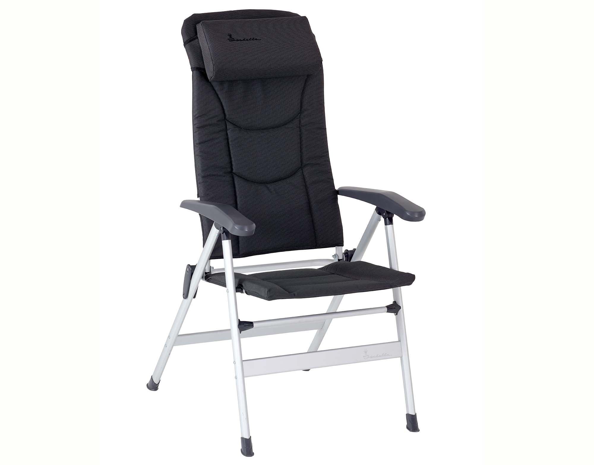 Thor stolen, der er en polstret campingstol med nakkepude, armlæn og ryggen kan sættes i 8 positioner – perfekt til campingturen eller hjemme på terrassen, både ved bordet og som afslapningsstol