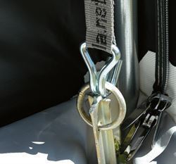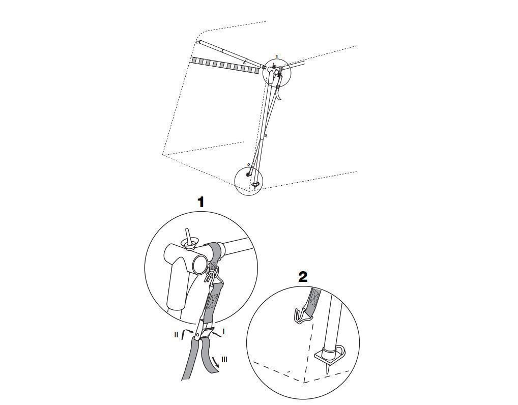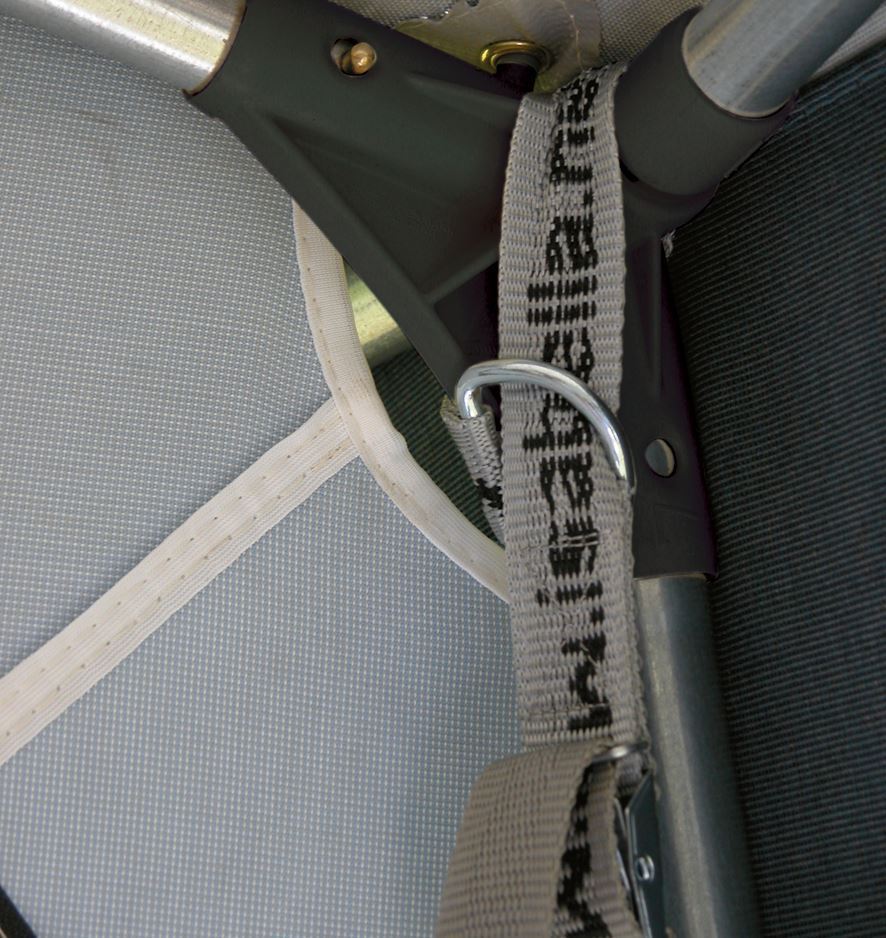 Sikrer dit fortelt ekstra godt i kraftig blæst og hindrer slitage på teltdugen. Kraftige stormbånd kan fastgøres inde i teltet.