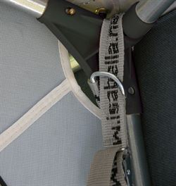 * Stram aldrig stormbåndet helt. Lad det i stedet sidde lidt løst, så det ikke trækker teltet sammen. På den måde kommer stormsikringssættet kun i brug, hvis forteltet er ved at ”lette”.