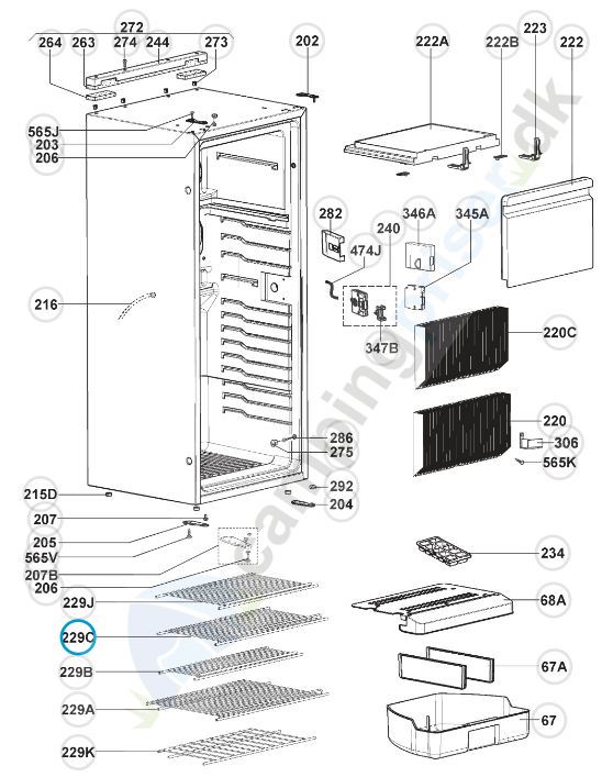 Køleskabsrist 215x455 Øverste Dometic køleskab