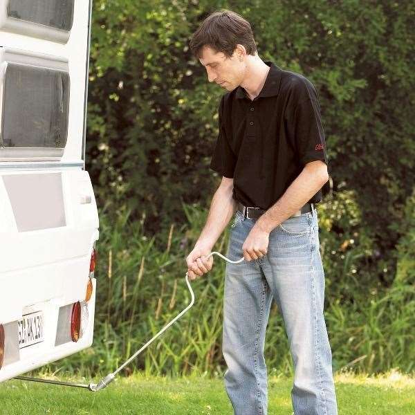 Forlængeren til håndsvinget, som har et knækled, gør det nemt at skrue støttebenene ned.