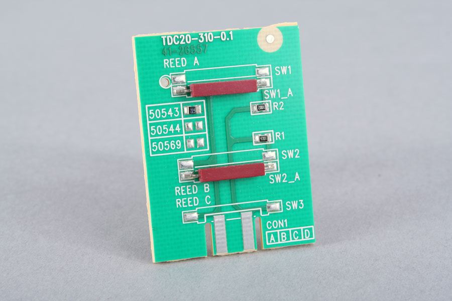 Printkortet indeholder rød kontakt, der registrerer niveauet i affaldstanken.