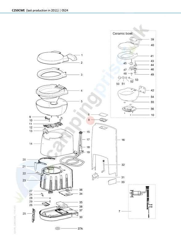 Se 1. tegning Thetford toilet C250 - del 8 - mærket med rød