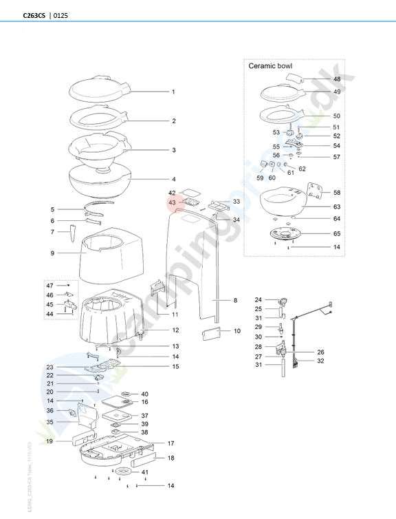 Se 3. tegning Thetford toilet C263 - del 43 - mærket med rød