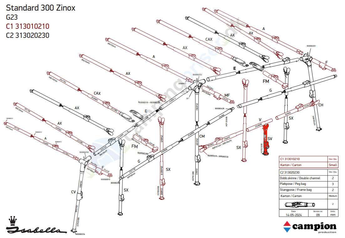 Kort støttestang G23 300 Zinox SV stang