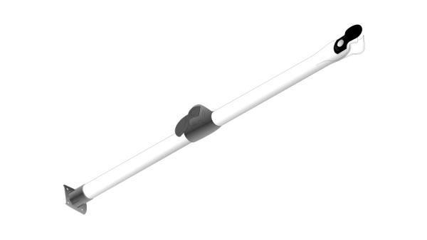 Kort støttestang med fod og klembeslag i enderne til standard fortelt til at understøtte evt. verandastang.