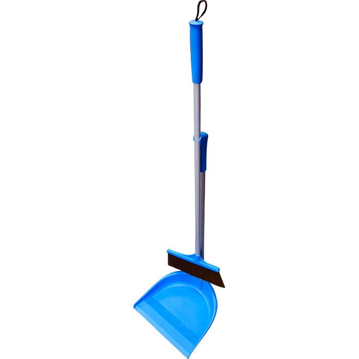 Kost og fejebakke med langt håndtag, blå.