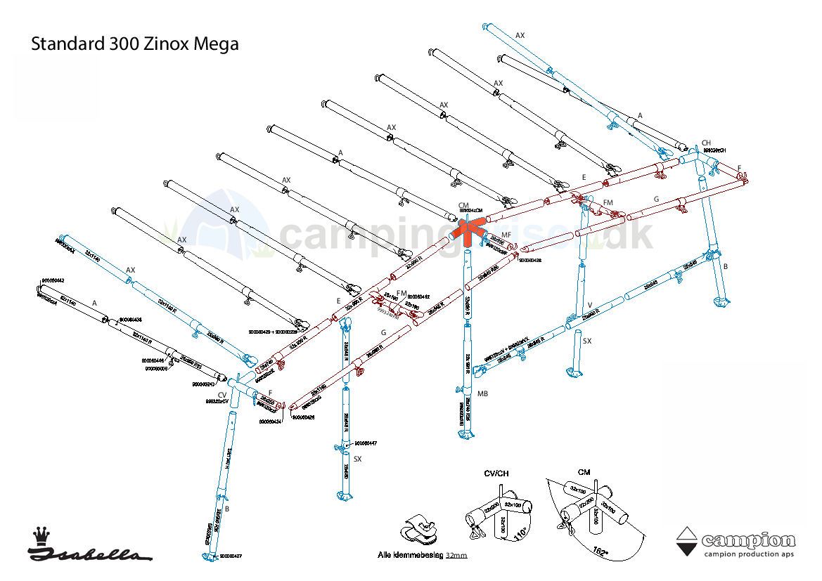 Isabella CM-kryds midtfor på fortelt med dybde på 300 cm i str. G19-24 i MegaFrame