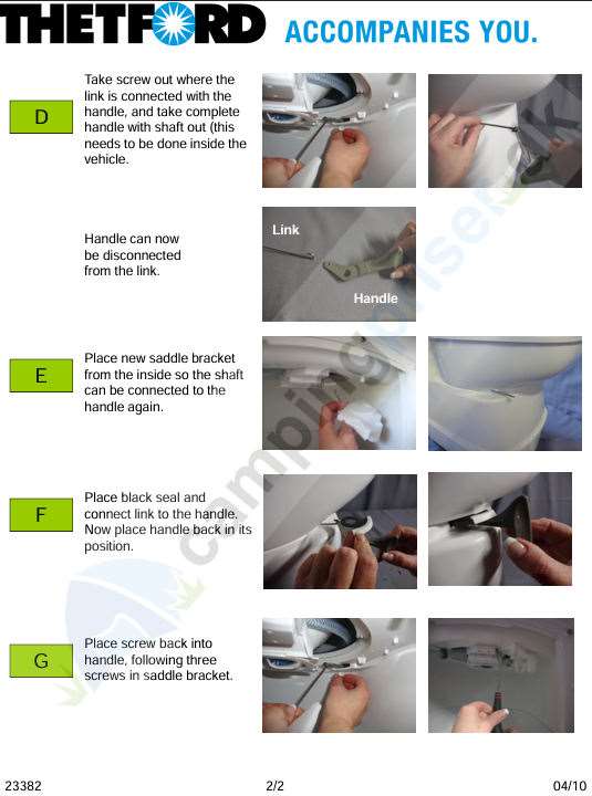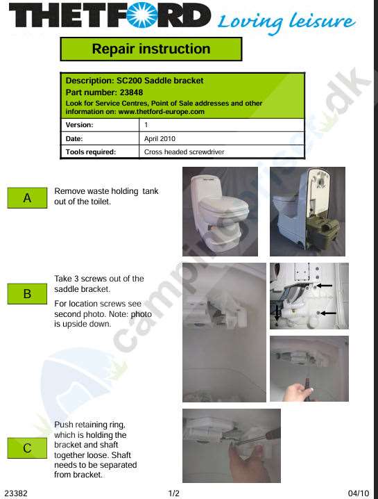 Thetford Toilet C200S - C200 CSThetford Toilet - C200 CW - C200 CWEVejledning til udskiftning af Låsemekanisme Thetford toilet C200C Vejledning til udskiftning af Låsemekanisme Thetford toilet C200C