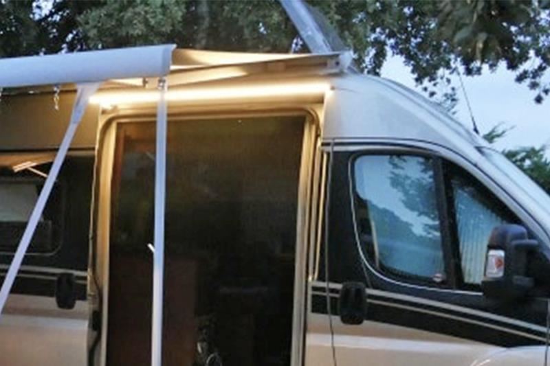 Viganella markiselys med sin høje lysstyrke er specielt  designet til at belyse indgangen til autocampere af typen  Fiat Ducato.