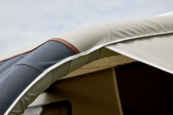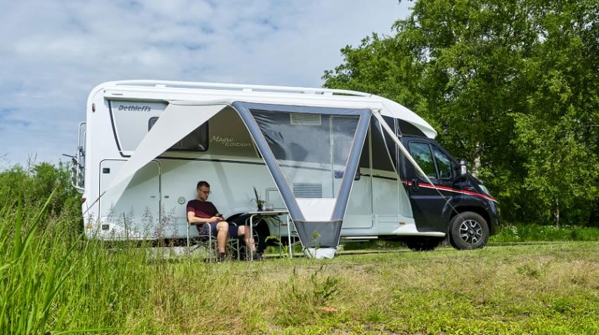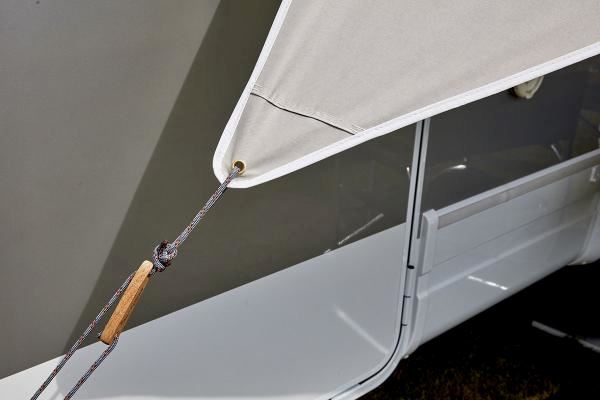 Solsejlet er forsynet med dobbeltvulst, og passer derfor til både campingvogne og autocampere.
