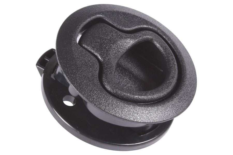 Åben og lukkebeslag til låger f.eks. under siddekassen i autocamper eller campingvogn.