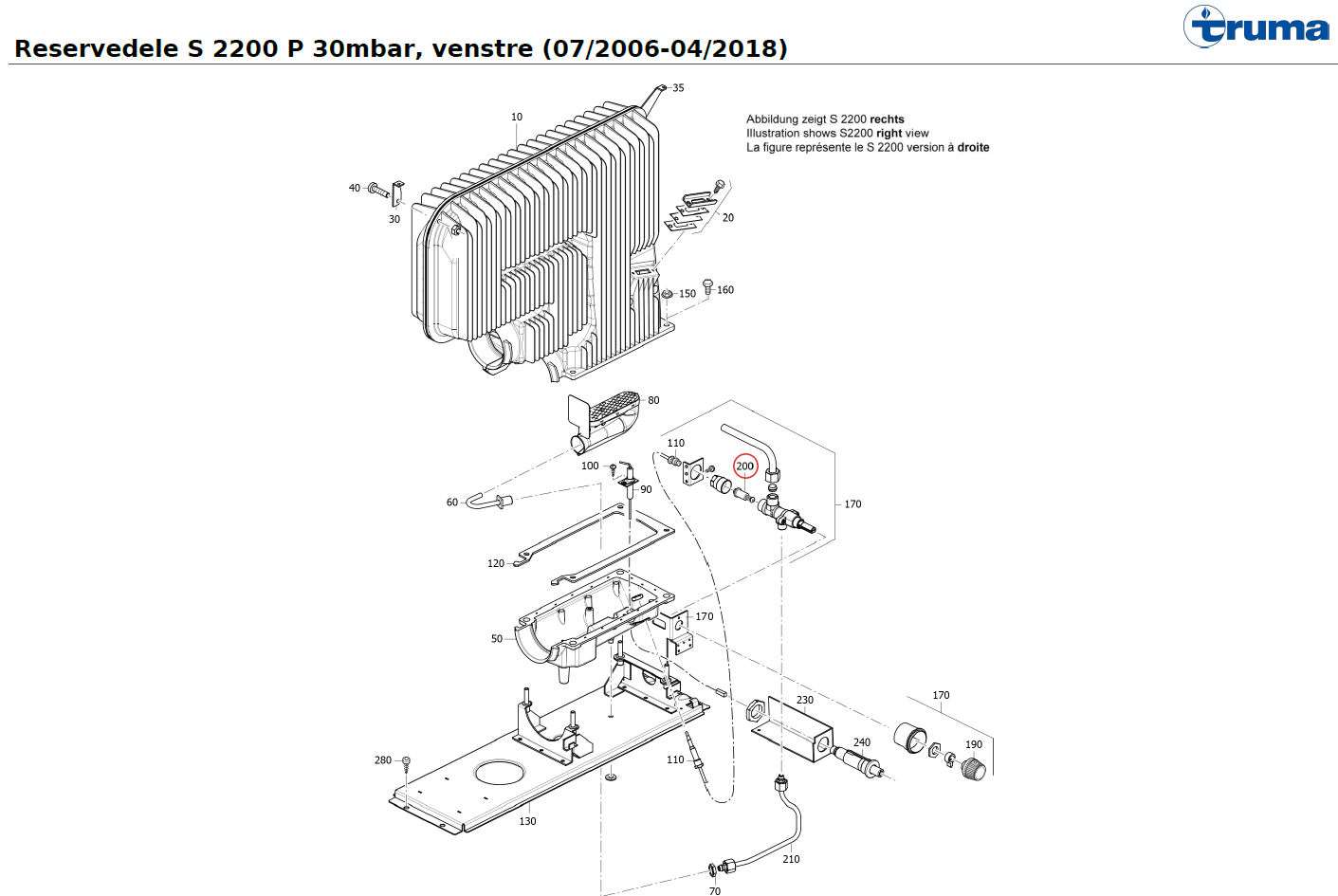Truma varmeovn S2200 - se tegning del 200 mærket med rød.