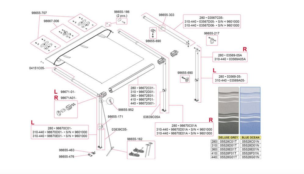 Passer til Fiamma Caravanstore posemarkise 310 - 360 - 410 - 440 cm. fra 2005 og fremefter.
