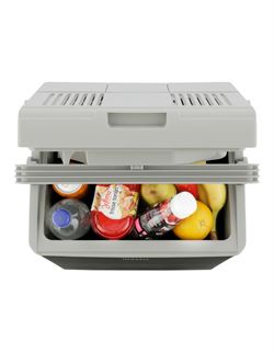 Den bærbare elektriske køleboks med 12 V og 230 V tilslutning køler op til 20 °C  under den omgivende temperatur.