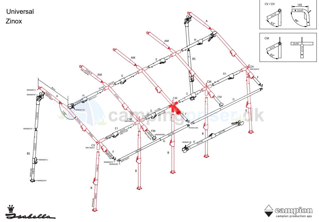 Isabella CM-kryds midterkryds til Isabella Universal 360 og 420 i Zinox med T-Rex beslag